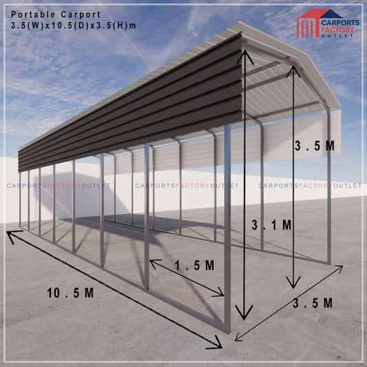 Portable Carport 3.5(W)x10.5(D)x2.8(H)m Gable Roof