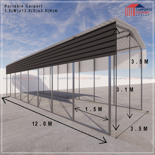 Portable Carport 3.5(W)x12.0(D)x2.8(H)m Gable Roof