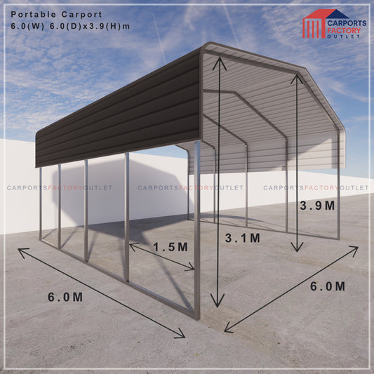 Portable Carport 6.0(W)x6.0(D)x3.9(H)m Wrapped Roof