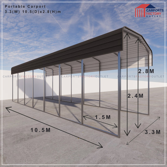 Portable Carport 3.3(W)x10.5(D)x2.8(H)m Wrapped Roof