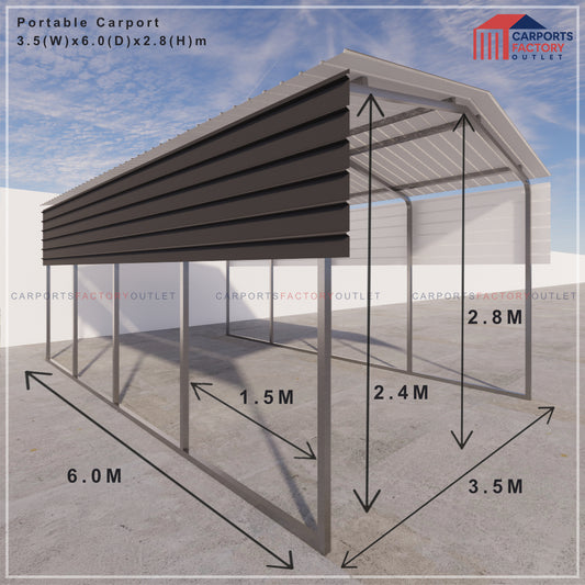 Portable Carport 3.5(W)x6.0(D)x2.8(H)m Gable Roof