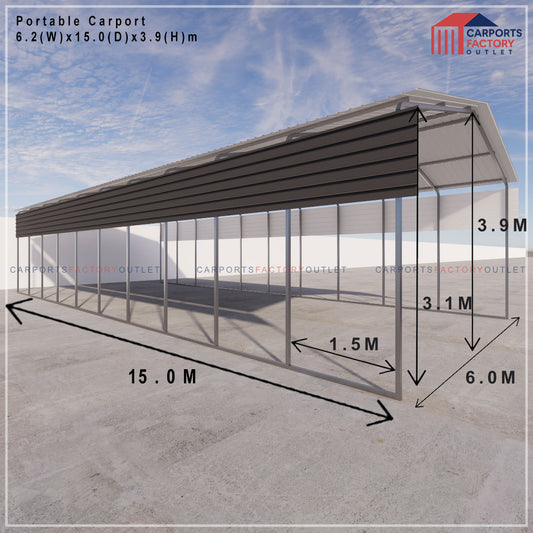 Portable Carport 6.2(W)x15.0(D)x3.9(H)m Gable Roof