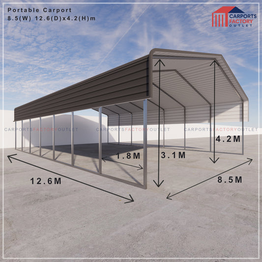 Portable Carport 8.5(W)x12.6(D)x4.2(H)m Wrapped Roof