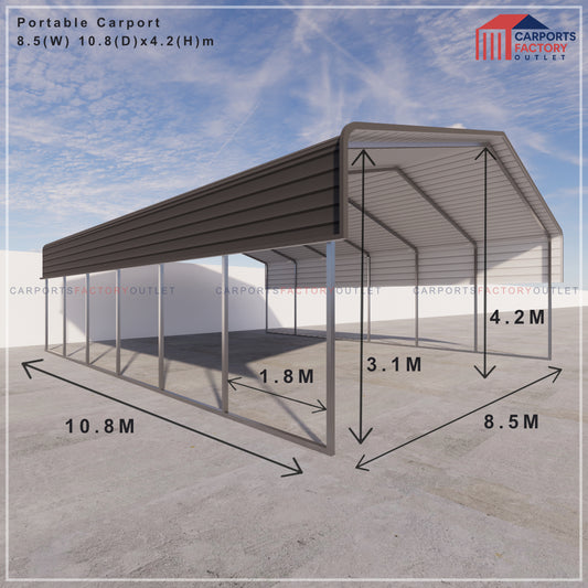 Portable Carport 8.5(W)x10.8(D)x4.2(H)m Wrapped Roof