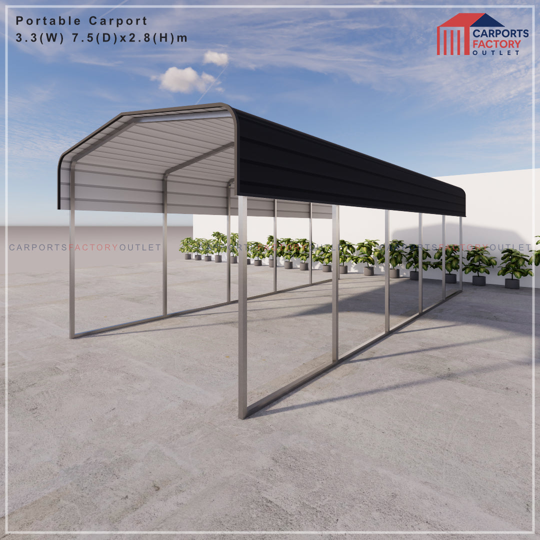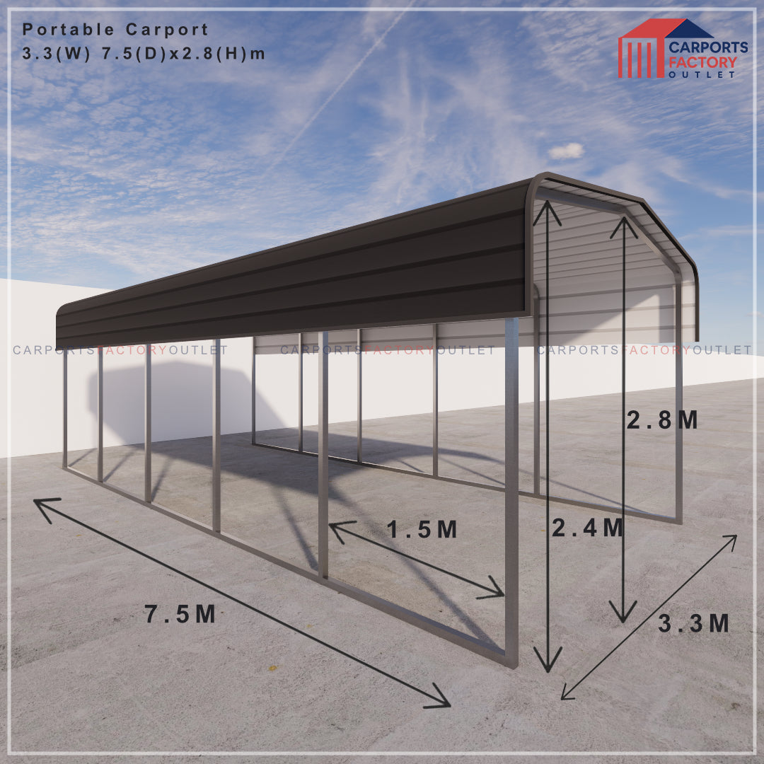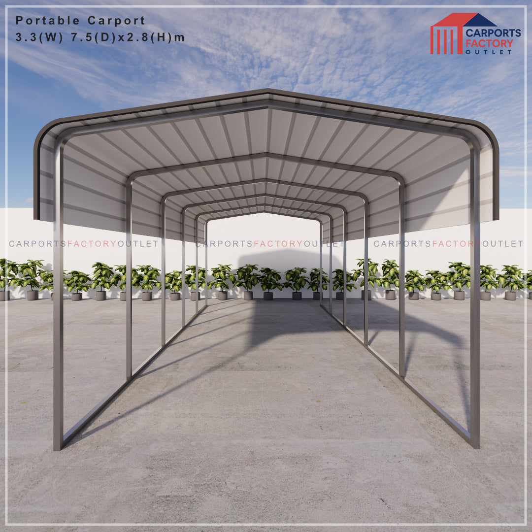 Portable Carport 3.3(W)x7.5(D)x2.8(H)m Wrapped Roof