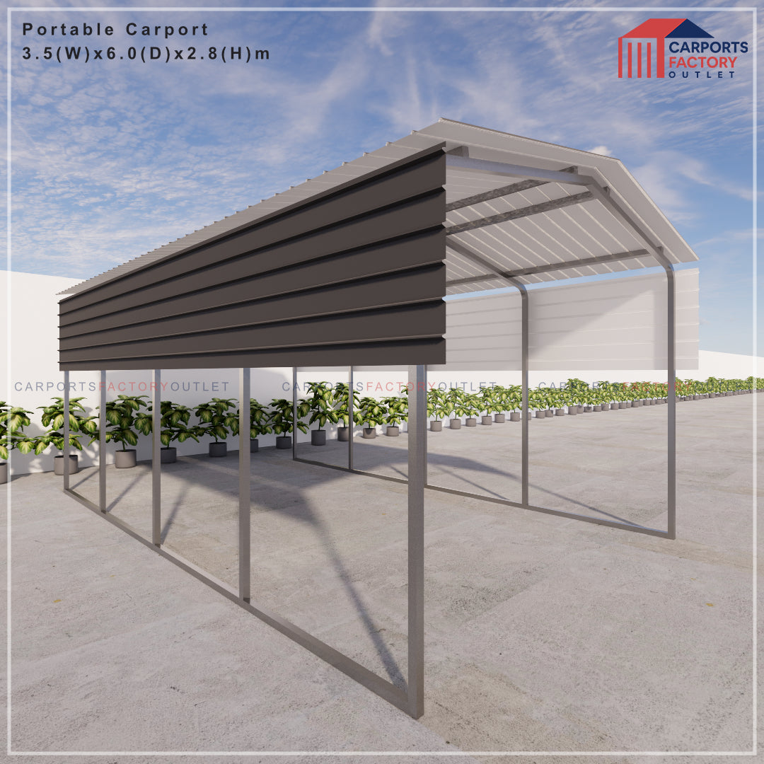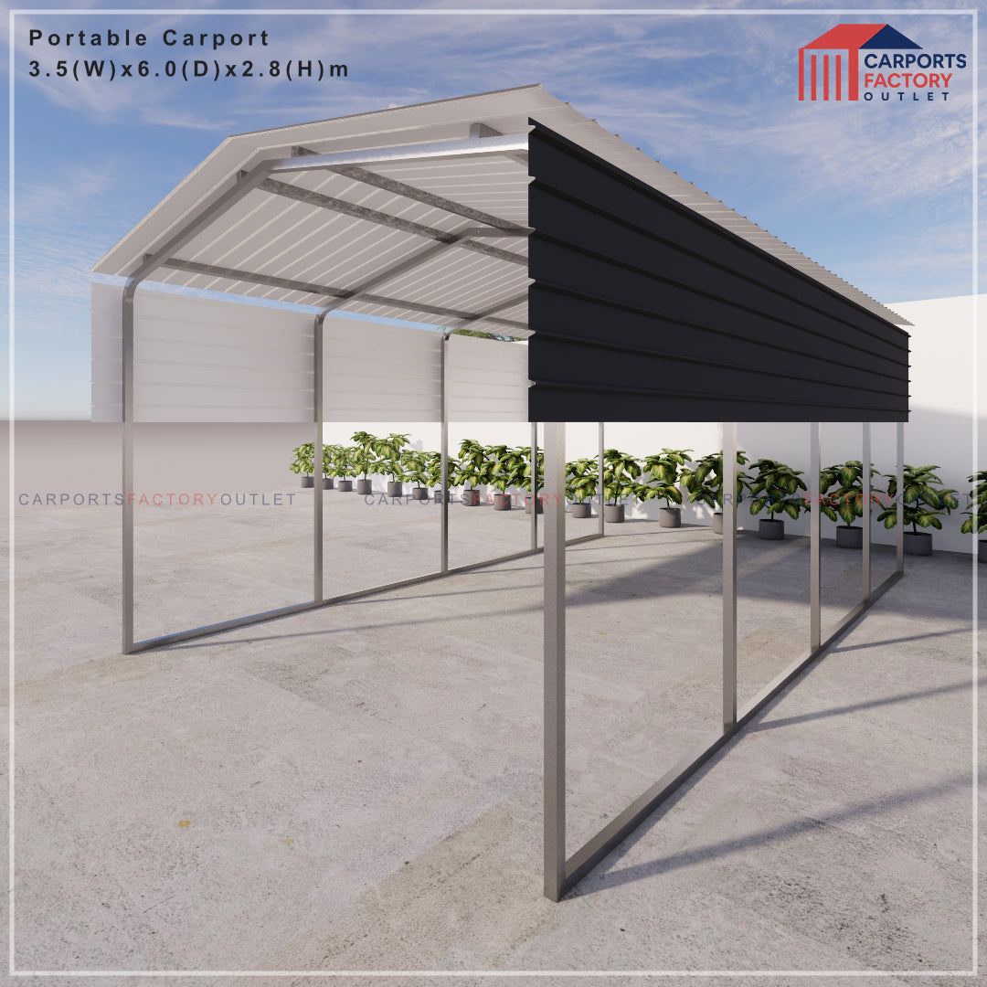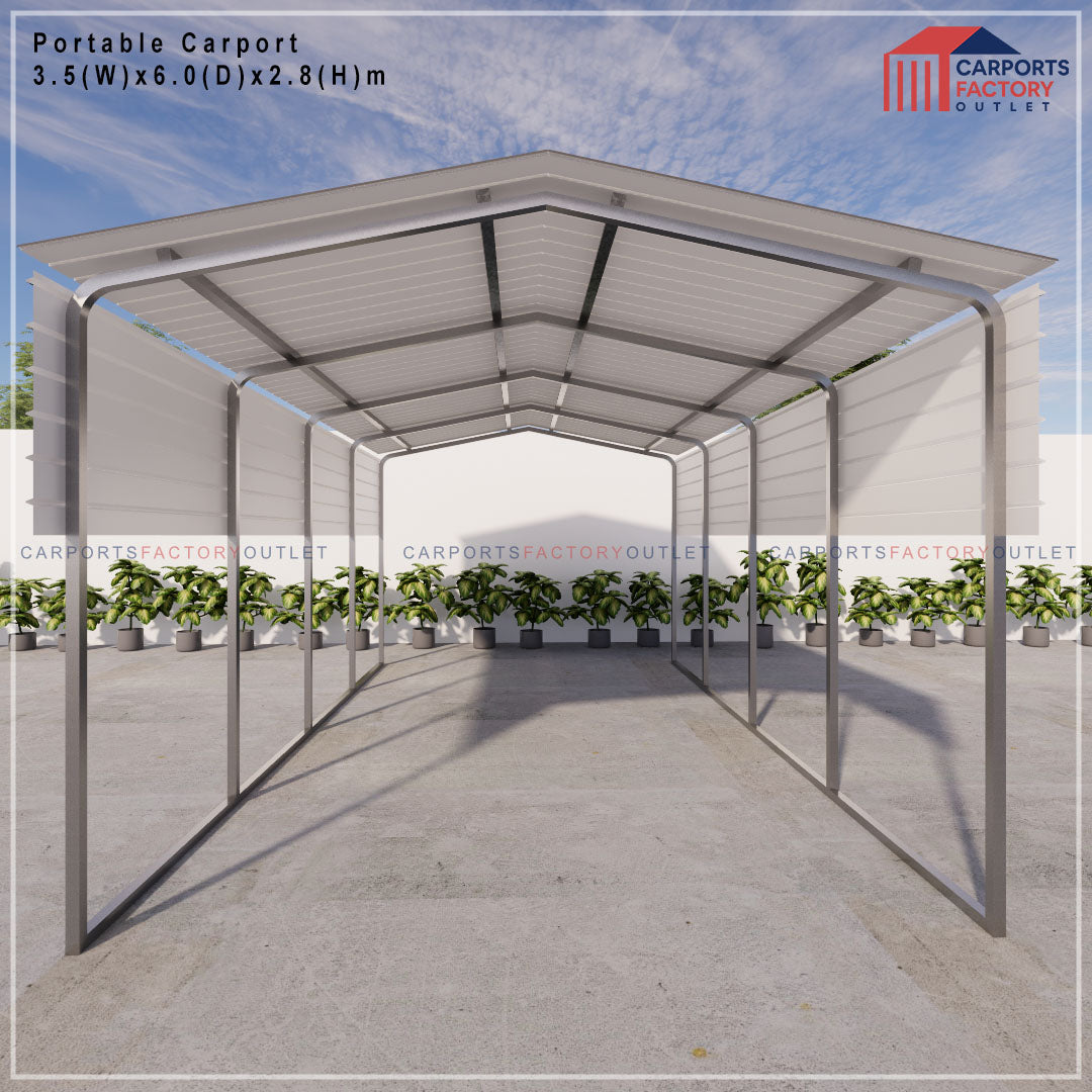Portable Carport 3.5(W)x6.0(D)x2.8(H)m Gable Roof