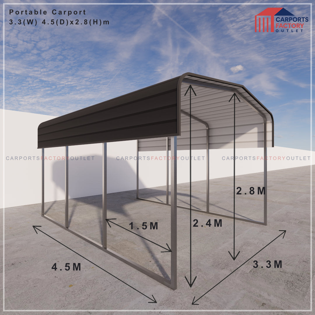 Portable Carport 3.3(W)x4.5(D)x2.8(H)m Wrapped Roof